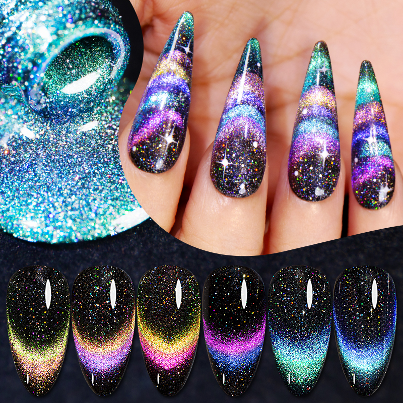 Transform your nails into a radiant work of art and let your fingers shine with this stunning gel polish. Add the Disco Flashing Cat Eye Gel Nail Polish to your collection today, and experience the magic of magnetic glitter polish!