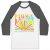features raglan 3/4 sleeves and a modern fit that is perfect for a day
